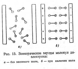 К ним относятся вода, аммиак, эфир, ацетон и т. д. У таких диэлектриков при отсутствии электрического поля диполи в пространстве расположены хаотически, и вследствие этого результирующее электрическое поле вокруг полярного диэлектрика равно нулю. Под действием внешнего электрического поля молекулы (а стало быть, и диполи) стремятся повернуться так, чтобы их оси совпали с направлением внешнего поля. С устранением электрического поля поляризация диэлектрика исчезает. Таким образом, поляризация представляет собой упругое смещение электрических зарядов в веществе диэлектрика. При некоторой определенной величине напряженности электрического поля смещение зарядов достигает предельной величины, после чего происходит разрушение — пробой диэлектрика, в результате которого диэлектрик теряет свои изолирующие свойства и становится токопроводящим. Напряженность электрического поля, при которой наступает пробой диэлектрика, называется пробивной напряженностью ξ пр. Напряженность поля, допускаемая при работе диэлектрика ξ доп, должна быть меньше пробивной напряженности. Отношение