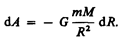 где R — расстояние от этого тела до рассматриваемой точки. Из формулы (25.4) вытекает, что геометрическое место точек с одинаковым потенциалом образует сферическую поверхность (R =const). Такие поверхности, для которых потенциал постоянен, называются эквипотенциальными. Рассмотрим взаимосвязь между потенциалом (j) поля тяготения и его напряженностью (g). Из выражений (25.1) и (25.4) следует, что элементарная работа d A, совершаемая силами поля при малом перемещении тела массой т, равна