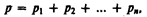 Закон Дальтона *: давление смеси идеальных газов равно сумме парциальных давлений p 1, p 2 ,..., рn входящих в нее газов: