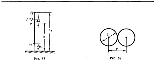 С изменением высоты от h 1 до h 2 давление изменяется от р 1 до р 2 (рис. 67), т. е.