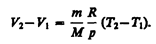 Интегрируя это уравнение в пределах от p 1 до p 2 и соответственно от V 1 до V 2, а затем потенцируя, придем к выражению