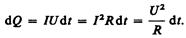 Если сила тока выражается в амперах, напряжение — в вольтах, сопротивление — в омах, то работа тока выражается в джоулях, а мощность — в ваттах. На практике применяются также внесистемные единицы работы тока: ватт-час (Вт× ч) и киловатт-час (кВт× ч). 1 Вт× ч — работа тока мощностью 1 Вт в течение 1 ч; 1 Вт× ч=3600 Bт× c=3, 6× 103 Дж; 1 кВт× ч=103 Вт× ч= 3, 6× 106 Дж. Если ток проходит по неподвижному металлическому проводнику, то вся работа тока идет на его нагревание и, по закону сохранения энергии,