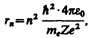 что соответствует расчетам на основании кинетической теории газов. Так как радиусы стационарных орбит измерить невозможно, то для проверки теории необходимо обратиться к таким величинам, которые могут быть измерены экспериментально. Такой величиной является энергия, излучаемая и поглощаемая атомами водорода. Полная энергия электрона в водородоподобной системе складывается из его кинетической энергии (тev 2 / 2) и потенциальной энергии в электростатическом поле ядра (– Ze 2/(4pe0 r)):