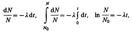 где l — постоянная для данного радиоактивного вещества величина, называемая постоянной радиоактивного распада; знак минус указывает, что общее число радиоактивных ядер в процессе распада уменьшается. Разделив переменные и интегрируя: