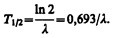 где N 0 — начальное число нераспавшихся ядер (в момент времени t =0), N— число нераспавшихся ядер в момент времени t. Формула (256.2) выражает закон радиоактивного распада, согласно которому число нераспавшихся ядер убывает со временем по экспоненциальному закону. Интенсивность процесса радиоактивного распада характеризуют две величины: период полураспада Т 1/2 и среднее время жизни t радиоактивного ядра. Период полураспада Т 1/2 — время, за которое исходное число радиоактивных ядер в среднем уменьшается вдвое. Тогда, согласно (256.2),