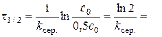 5. Побудова за даними табл. 1.2. графіка за ним 6. Кінетичне рівняння реакції: 7. Визначення часу напівперетворення: а) за формулою б) за графіком 8. Побудова графіка Таблиця 1.3. Залежність константи швидкості реакції від концентрації