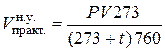 Об’єм практично одержаного газу приводять до нормальних умов за формулою: