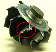 Посторонние твердые предметы, попадающие на компрессорное колесо, приводят к сбиванию лопаток колеса компрессора.