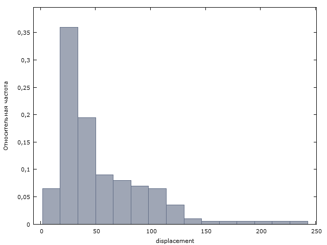 Водоизмещение яхт находится в диапазоне от 0, 1 до 150 тонн. Однако есть несколько яхт, водоизмещение которых превышает 150 тонн, поэтому их придется исключить из модели.