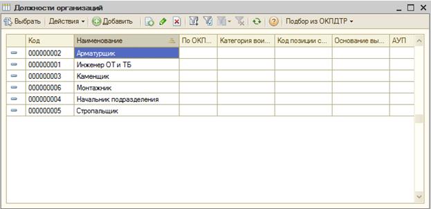 На рисунке 24 представлен справочник по должностям сотрудников организации.