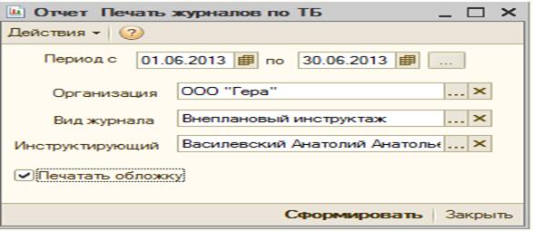 Рисунок 26 – Отчет «Печать журналов по ТБ»
