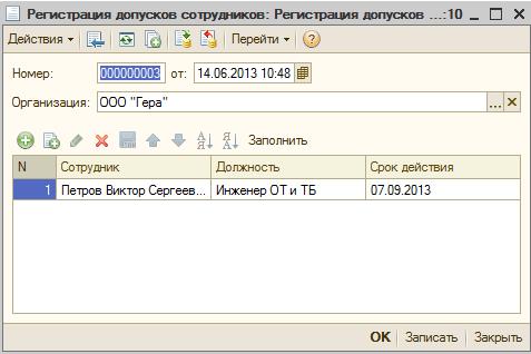 Рисунок 31 – Создание документа «Регистрация допусков сотрудников»