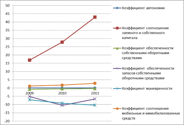 Рисунок 15 - Показатели финансовой устойчивости ОАО «ОСК» за 2009-2011гг.