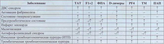 Для выявления растворимых фибрин-мономерных комплексов (РФМК) в КДЛ традиционно использовали так называемые паракоагуляци- онные («гельобразующие») тесты - этаноловый и протаминсульфатный. Однако из-за качественной оценки результатов они малоинформативны. Различные модификации протаминсульфатного теста с количественным и полуколичественным представлением результата малоточны и плохо воспроизводимы. Протаминсульфат связывается с гепарином, поэтому у больных, получавших гепарин, протаминсульфатный тест дает отрицательный результат. В настоящее время эти тесты можно считать устаревшими. В последнее время стал активно использоваться паракоагуляционный ортофенантролино-вый тест. С помощью ортофенантролинового теста возможно не только качественное, но и количественное определение РФМК. Гепаринотера-пия с содержанием гепарина в плазме крови до концентрации 10 ед/мл не влияет на результаты теста. Ортофенантролиновый тест более чувствителен, чем другие паракоагуляционные тесты. Однако при остро протекающих (катастрофических) формах ДВС с глубокой гипофибриногене-мией показатели паракоагуляционных тестов могут снижаться. Краткая характеристика и диагностическое значение представленных выше и дополнительных тестов активации системы гемостаза даны в табл. 34. В табл. 35 суммированы наиболее вероятные изменения лабораторных тестов при некоторых патологических состояниях.