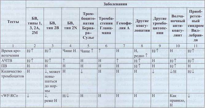 Дифференциальный диагноз болезни Виллебранда Таблица 53