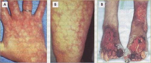 Рис. 140 (А, Б, В). Антифосфолипидный синдром. Всгскулопатии с окк-люзивными и тромботичес-кими поражениями вен и артерий