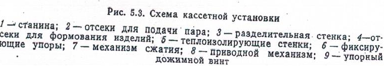 Установки периодического действия. Это самая простая и распространенная пропарочная камера. В зависимости от условий эксплуатации, уровня грунтовых вод, камеру заглубляют в Землю так, что её края возвышаются над полом не более 0, 6-0, 7 м, или устанавливают на уровне пола, в этом случае устраивают специальные площадки для обслуживания. Структура: камера имеет прямоугольную форму, выполнена из железо-бетона. Стены камеры имеют теплоизоляцию (17), для снижения потерь теплоты в окружающую среду, пол камеры (1), делают с уклоном для стока конденсата, в полу есть трап (2) для вывода конденсата. Приямке трапа, куда стекает конденсат, делают конденсат отводящее устройство (3). Чаще ставят вода отделительную петлю. Целью конденсат отводящее устройства: выпускать конденсат в систему конденсат отвода (4) и не пропускать пар. В стены камеры (5) имеет отверстие (6), для ввода пара, который подается вниз камеры, по трубопроводу (7) от сети. Трубопровод заканчивается трубами (8), которые уложены по периметру камеры, и имеют отверстия перфорации, через которые пар поступает в камеры, кроме отверстия для ввода пара, в стене камеры делают отверстие (9), для вентиляции в период охлаждения, оно соединяется каналом (10) с вентилятором, который отбирает ПВС из камеры. Для изоляции камеры во время подогрева и изотермической выдержки от системы вентиляции устраивают герметизирующий конус (11). Который при помощи червячного винта (12) может подниматься и опускаться. При поднятом конусе происходит вентиляция, при опущенном, камера изолируется. Принцип действия: камеру краном загружают изделия в формах. Каждая форма от следующей изолируется прокладкой из металла, для того что бы пар обогревал формы со всех сторон. Высота камеры достигает 2, 5-3м. в ширину и длину делают такой, чтобы помещалось 2 штабеля изделий в формах. Между штабелями и штабелями и стенками, оставляют зазор, что бы обеспечить захват изделий автоматическими траверсами при загрузке и отгрузке камеры. Иногда в таких камерах подвергают ТВО изделия, уже набравшие прочность, для их распалубки. Такие изделия на поддонах загружают на стойки кронштейнами-упорами. При укладке изделия на нижний кронштейн, открывается следующий кронштейн и т.д., и это позволяет загружать изделия на всю высоту камеры. (2) Кассетные установки.
