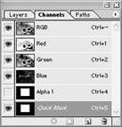 Цветовые каналы – предназначены для управления цветовой моделью. Цветовые каналы образуются автоматически при создании документа, их число зависит от выбранной цветовой модели – по одному каналу для каждого цвета и совмещенный канал. Каналы можно отключать щелчком по пиктограмме " Глаз" слева от названия канала. Quick Mask (Быстрая маска) – временный канал, используется для редактирования выделения. Для перехода к Quick Maskнужно, создав приблизительное выделение, нажать клавишу < Q>. На палитре КАНАЛЫ появляется канал Quick Mask. Для изменения цвета маскирования надо произвести двойной щелчок по названию канала Quick Mask. Маскируемую область можно редактировать с помощью инструментов рисования. При закрашивании черным цветом, маскируемая область увеличивается, при закрашивании белым – уменьшается, а при закрашивании оттенками серого становится полупрозрачной. Для возврата в обычный режим нажать клавишу < Q>, после выполнения этого действия канал Quick Maskисчезает. Alpha channels (Альфа – каналы) – используются для хранения выделенных областей. Создание Альфа–канала: Первый способ: создать канал Quick Mask, поставить курсор мыши на название этого канала и, удерживая нажатой левую клавишу мыши, буксировать курсор мыши на кнопку Create new channel. Второй способ: создать выделение и нажать на кнопку Save selection as channel. Загрузка выделения из Альфа–канала: У держивая нажатой клавишу < CTRL>, щелкнуть по названию Альфа–канала, из которого надо загрузить выделение.