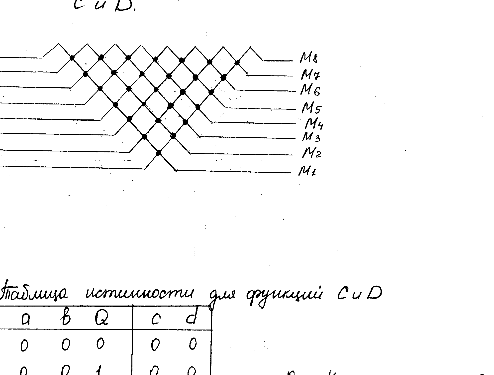 Взаимоотношения между любой парой конкурирующих запросов однозначно определяются битом Qi управляющего регистра в соответствии таблицей работы, имеющей два варианта формирования выходов c-d, c’-d’ (табл.) элементарной ячейки (рис.5). Рис.5 Схема элементарной конфликтной ячейки Таблица