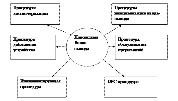 Управление работой драйверов осуществляет подсистема ввода-вывода. Драйвер устройства состоит из набора процедур, вызываемых на различных этапах обработки запроса ввода-вывода. Основные процедуры драйвера показаны на рис. 1-31.
