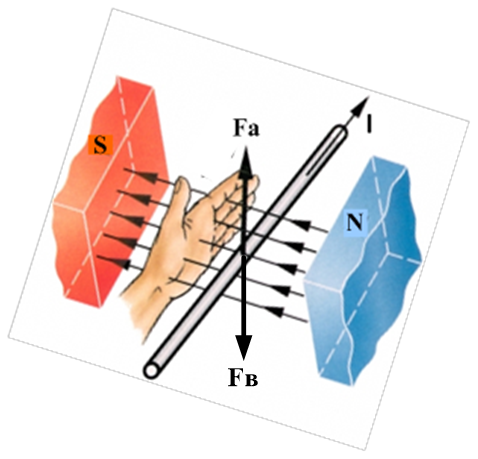 На провідник зі струмом, який поміщений в магнітне поле, діють дві сили, які за умовами задачі врівноважують одна іншу (дивись рисунок):