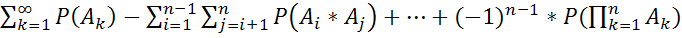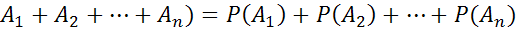 Общий случай: для произвольных А и В имеет место формула P(A+B)=P(A)+P(B)-P(A*B). Эта формула соответствует предыдущей: если А и В несовместные события, А*В не содержит ни одного элементарного исхода P(A*B)=0. Пусть А произвольное событие, тогда ч/з P(A)=1-P( А+ P(А+ Если среди событий Доказывается методом индукции на основании равенства для 2-х несовместных событий P(A+B)=P(A)+P(B)-P(A*B)