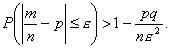 Теорема Бернулли: Если вероятность события А в каждом из n независимых испытаний постоянна и равна p, то при достаточно большом n для произвольного ε > 0 справедливо неравенство