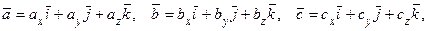 Так как справедлива теорема 2.2, смешанное произведение обозначают символом Найдем выражение смешанного произведения векторов через координаты сомножителей. Пусть