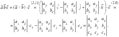 Верно и обратное последнему утверждение, т.е., если Теорема 2.2. В смешанном произведении векторов знаки векторного и скалярного произведений можно поменять местами, т.е.