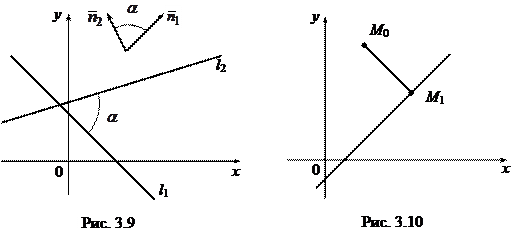 Если эта система имеет единственное решение (х 0, у 0), то прямые l 1 и l 2, пересекается в точке М 0(х 0, у 0). Если система (3.8) не имеет решений, то прямые l 1 и l 2 не пересекаются, следовательно, l 1 || l 2. Если система (3.8) имеет бесконечное множество решений, то l 1 и l 2 совпадают. Однако решить вопрос о взаимном расположении l 1 и l 2 можно и не решая системы (3.3). Действительно, из общего уравнения прямой l 1, находим, что ее нормальный вектор Используя нормальные векторы