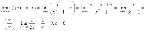 Отсюда следует, что при x ®+¥ прямая y = 1× x +0, т.е. y = x - наклонная асимптота при x®+¥. Найдем наклонную асимптоту при x ®-¥. Вычисляя те же пределы при x ®-¥, получим k = 1 и b = 0, то есть прямая y = x является наклонной асимптотой при x® -¥. Ответ: x = ± 1 – вертикальные асимптоты y = x – наклонная асимптота при x ® ±¥.