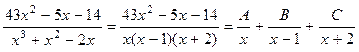3) Для нахождения коэффициентов A, B и C приводим разложение к общему знаменателю и приравняем их числители.