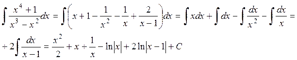 где Tm-n (x) и Rr (x) – многочлены степени m-n и r соответственно (причем r< n). 2) Разложить правильную рациональную дробь 3) Вычислить интегралы от многочлена Tm-n (x) и каждой из простых дробей, полученных на шаге 2). Пример 24. 1) Дробь