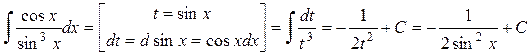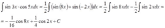 б) Если одно из чисел m или n – нечетное, то выполняют замену: t = sin x, если n – нечетное; t = cos x, если m – нечетное. Эта замена приводит к интегрированию степенных интегралов или рациональных дроби. в) Если оба числа m и n – нечетные, то интеграл берется как в случае замены: t = sin x, так и t = cos x. Пример 25.