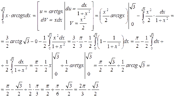 Пример 3. Интегрирование по частям в определенном интеграле