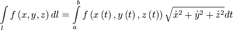 Если на кривой C определена скалярная функция F, то интеграл называется криволинейным интегралом первого рода от скалярной функции F вдоль кривой C. Свойства: Линейность: