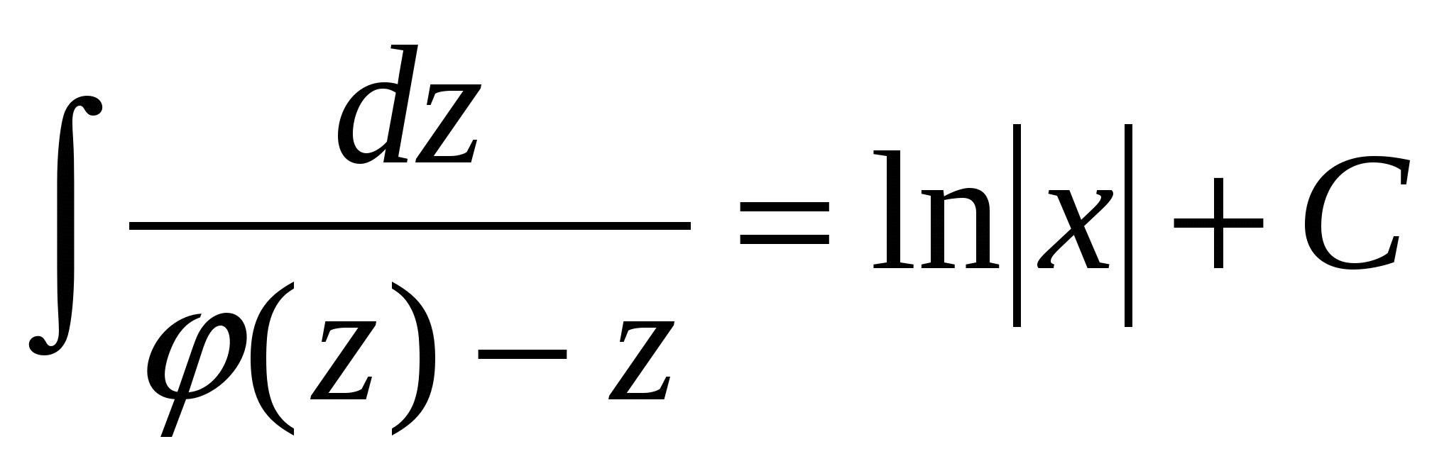 что и требовалось доказать. Теорема. Любая функция Доказательство. Первое утверждение теоремы очевидно, т.к. Определение 2. Уравнение в котором M и N – однородные функции одной и той же степени, т.е. обладают свойством Очевидно, что это уравнение всегда может быть приведено к виду Однородное уравнение приводится к уравнению с разделяющимися переменными с помощью замены искомой функции y по формуле y=zx, где z(x) – новая искомая функция. Выполнив эту подстановку в уравнении (4.2), получим: Интегрируя, получаем общий интеграл уравнения относительно функции z(x)