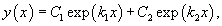 Дискриминант характеристического квадратного уравнения положителен: D > 0. Тогда корни характеристического уравнения k1 и k2 действительны и различны. В этом случае общее решение описывается функцией