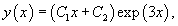 Как видно, характеристическое уравнение имеет один корень второго порядка: k1 = 3. Поэтому общее решение дифференциального уравнения определяется формулой