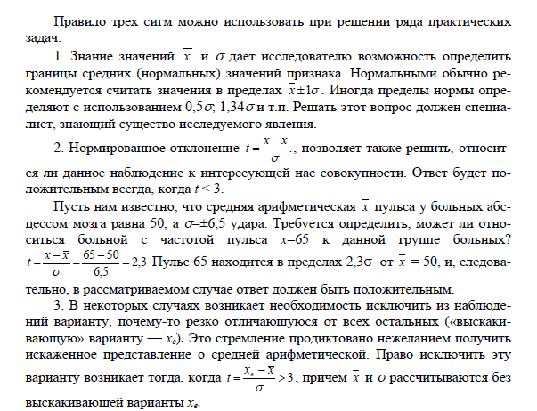 " Правило трех сигм" 68.3 % всех вариант отклоняются от своей средней не более, чем на σ;