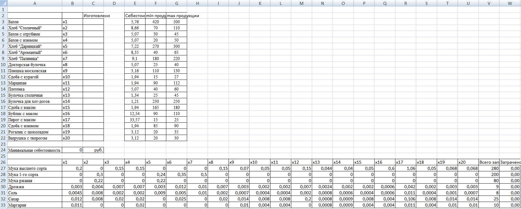 ПРИЛОЖЕНИЕ 3. Исходные данные общей задачи линейного программирования на минимизацию себестоимости