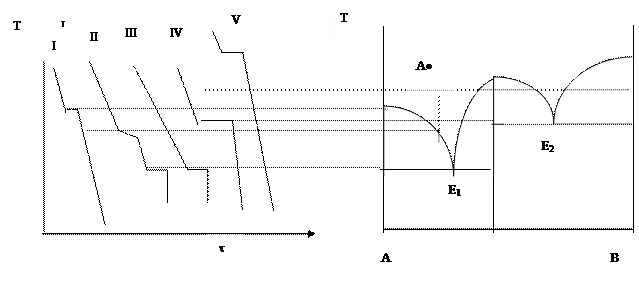 $$$ 33 Қ исық тардың қ айсысы қ ұ pамы А нү ктесiмен анық талатын қ оспаның суыту қ исығ ы болып табылады?