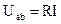 где R- коэффициент пропорциональности между напряжением и током на участке ab. Ток в резисторе направлен от точки с большим потенциалом к точке с меньшим потенциалом. Положительное направление напряжения на резисторе с сопротивлением R всегда совпадает по направлению с током. Напряжение Uab между двумя точками равно разности потенциалов этих точек: