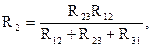 Рис. 1.11 Формулы для определения сопротивлений лучей звезды через сопротивления сторон треугольника имеют вид: