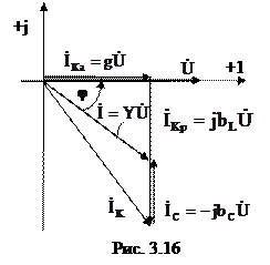 Векторная диаграмма токов и напряжений (рис. 3.16) будет аналогична векторной диаграмме параллельного соединения идеальных элементов R, L, C.