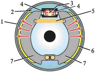 Тормозная система (рис. 54) предназначена для уменьшения скорости движения и остановки автомобиля (рабочая тормозная система). Она также позволяет удерживать автомобиль от самопроизвольного движения во время стоянки (стояночная тормозная система). Рис. 54. Общая схема тормозной системы: 1 - передний тормоз; 2 - педаль тормоза; 3 - вакуумный усилитель; 4 - главный цилиндр гидропривода тормозов; 5 - трубопровод контура привода передних тормозов; 6 - защитный кожух переднего тормоза; 7 - суппорт переднего тормоза; 8 - вакуумный трубопровод; 9 - бачок главного цилиндра; 10 - кнопка рычага привода стояночного тормоза; 11 - рычаг привода стояночного тормоза; 12 - тяга фиксатора рычага; 13 - фиксатор рычага; 14 - кронштейн рычага привода стояночного тормоза; 15 - возвратный рычаг; 16 - трубопровод контура привода задних тормозов; 17 - фланец наконечника оболочки троса; 18 - задний тормоз; 19 - регулятор давления задних тормозов; 20 - рычаг привода регулятора давления; 21 - колодки заднего тормоза; 22 - рычаг ручного привода колодок; 23 - тяга рычага привода регулятора давления; 24 - кронштейн крепления наконечника оболочки троса; 25 - задний трос; 26 - контргайка; 27 - регулировочная гайка; 28 - втулка; 29 - направляющая заднего троса; 30 - направляющий ролик; 31 - передний трос; 32 - упор выключателя контрольной лампы стояночного тормоза; 33 - выключатель стоп-сигнала При неисправности усилителя прикладываемое к рулевому колесу усилие значительно возрастает и в случае внезапного изменения дорожной обстановки водитель может не успеть быстро повернуть руль. Кроме того, при неработающем усилителе руля возрастает физическая и эмоциональная усталость водителя. После непродолжительной поездки он уже не в состоянии принимать правильные решения и может стать виновником дорожно-транспортного происшествия. Рабочая тормозная система приводится в действие нажатием на педаль тормоза, которая располагается в салоне автомобиля. Усилие ноги водителя передается на тормозные механизмы всех четырех колес. Стояночная тормозная система нужна не только на стоянке, она необходима также для предотвращения скатывания автомобиля назад при трогании с места на подъемах дороги. С помощью рычага стояночного тормоза, который располагается между передними сиденьями автомобиля, водитель может управлять тормозными механизмами задних колес. Рабочая тормозная система состоит из: Привод тормозов служит для передачи усилия ноги водителя от педали тормоза к исполнительным тормозным механизмам колес автомобиля. На легковых автомобилях применяется гидравлический привод тормозов, в котором используется специальная тормозная жидкость. Гидравлический привод тормозов состоит из (рис. 55): Рис. 55. Схема гидропривода тормозов: 1 - тормозные цилиндры передних колес; 2 - трубопровод передних тормозов; 3 - трубопровод задних тормозов; 4 - тормозные цилиндры задних колес; 5 - бачок главного тормозного цилиндра; 6 - главный тормозной цилиндр; 7 - поршень главного тормозного цилиндра; 8 - шток; 9 - педаль тормоза Когда водитель нажимает на педаль тормоза, его усилие передается через шток на поршень главного тормозного цилиндра. Поршень давит на жидкость, которая находится в главном цилиндре и трубопроводах. Давление жидкости от главного цилиндра передается по трубкам ко всем колесным тормозным цилиндрам, заставляя выдвигатьс