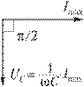 Рис. 10.24 Реактивное сопротивление цепи переменному току складывается из индуктивного сопротивления и емкостного сопротивления. Однако с учетом векторных диаграмм для переменного тока в катушке индуктивности (см. рис. 10.22) и конденсаторе (см. рис. 10.24), т.е. из-за сдвига фаз между током и напряжением, формула для расчета реактивного сопротивления цепи выглядит следующим образом: X = R L − R C, где X — реактивное сопротивление цепи; R L — индуктивное сопротивление катушки; R C — емкостное сопротивление конденсатора. Емкостное сопротивление — сопротивление, оказываемое переменному току электрическим полем конденсатора: RC =1 ω C, где ω — циклическая частота переменного тока; C — электроемкость конденсатора. Индуктивное сопротивление — сопротивление, оказываемое переменному току индукционным электрическим полем катушки: R L = ω L, где L — индуктивность катушки.