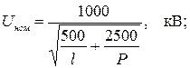 На основе опыта проектирования и эксплуатации линии электропередачи используют приближенные эмпирические формулы, которые по величине потока активной мощности в нормальном режиме и длине ЛЭП позволяют получить оценку желаемого номинального напряжения. Выбор номинальных напряжений производится для каждой ЛЭП с последующим обобщением по всему независимому участку. Для определения номинального напряжения линии на стадии проектирования применяется формула, предложенная Г.А. Илларионовым: