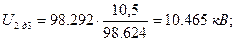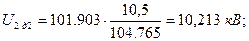 Находим напряжение обмотки низкого напряжения, приведённое к стороне высокого напряжения: