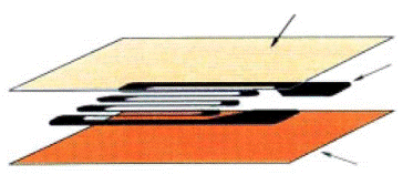 Существует много видов тензорезисторов. Среди них универсальный тензорезистор, имеющий следующую структуру: решетчатый чувствительный элемент из тонкой металлической резистивной фольги (толщиной 3 – 6 μ м) кладется на основу из тонкой пластмассовой пленки (толщиной 15-16μ м) и ламинируется тонкой пленкой.